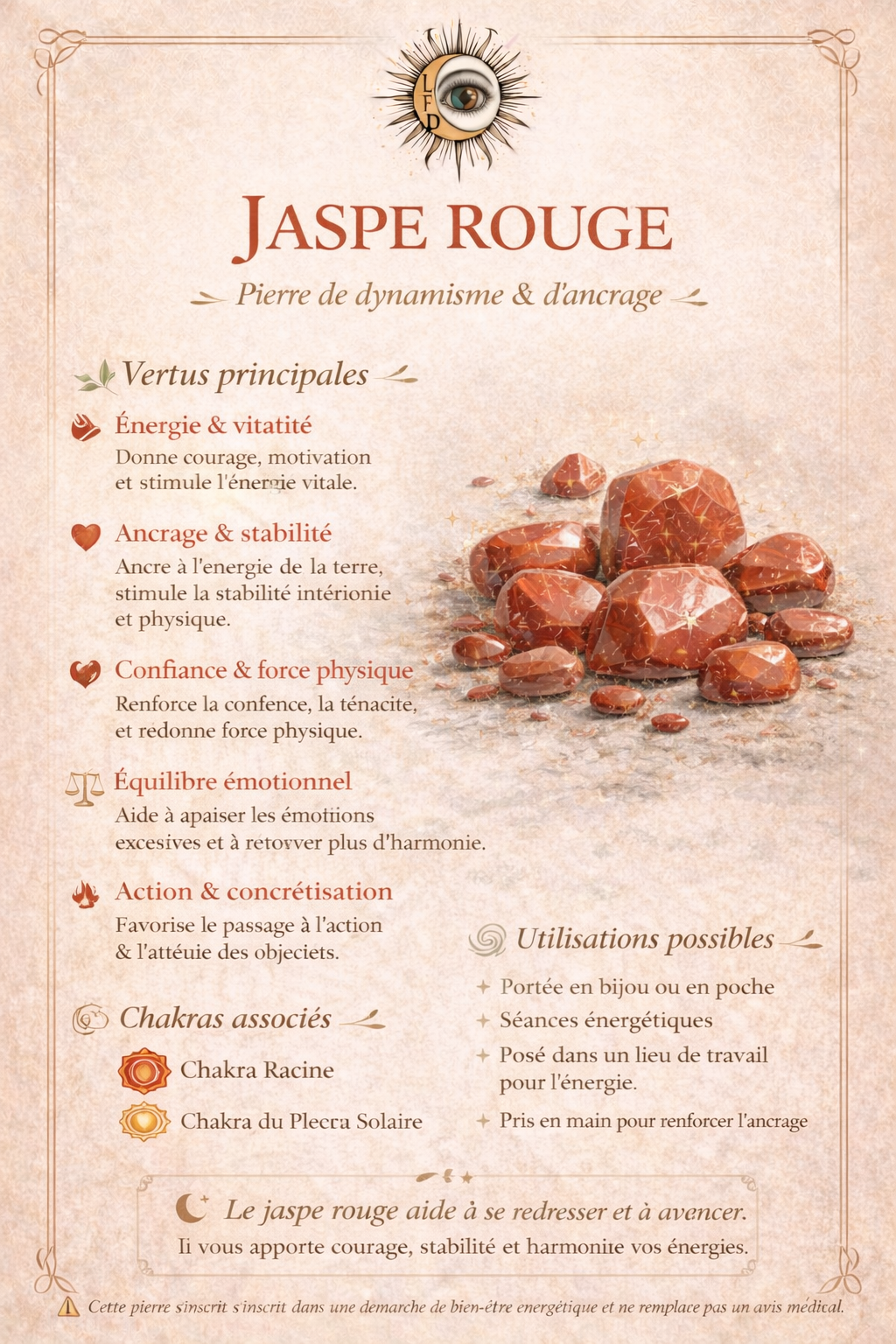 👉 Les vertus et bienfaits du jaspe rouge sont présentés sur les photos du produit.