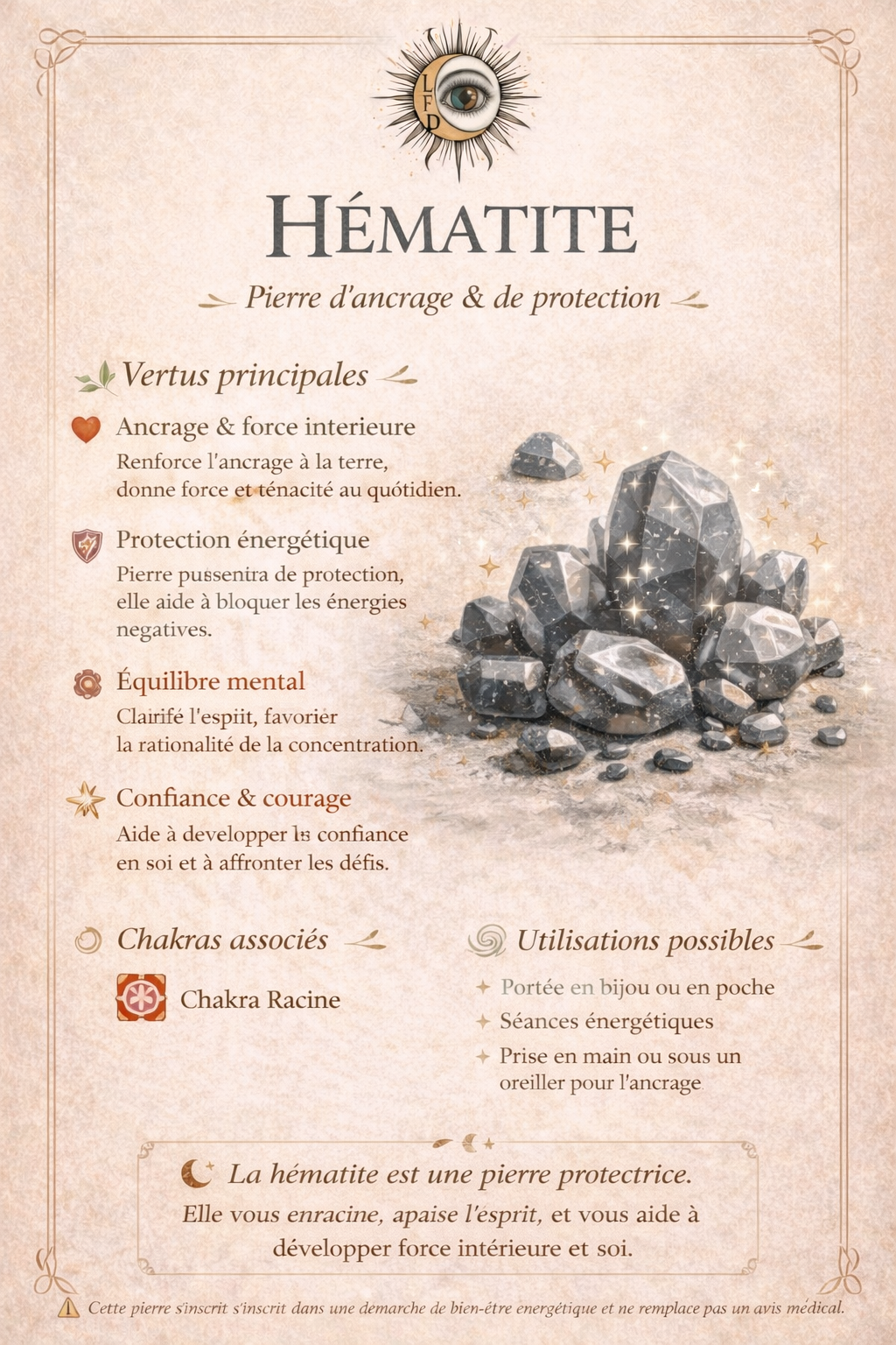 👉 Les vertus et bienfaits de l’hématite sont détaillés sur les photos du produit.