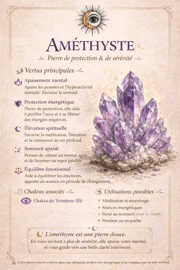 👉 Les vertus et bienfaits de l’améthyste sont détaillés directement sur les photos du produit.