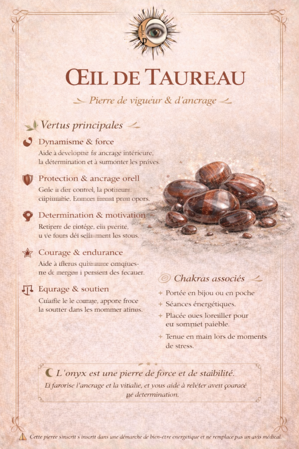 👉 Les vertus et bienfaits de l’œil de taureau sont détaillés sur les photos du produit.