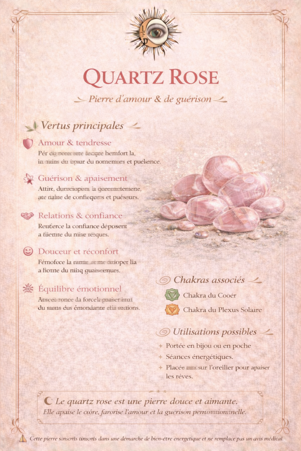 👉 Les vertus et bienfaits du quartz rose sont détaillés directement sur les photos du produit.