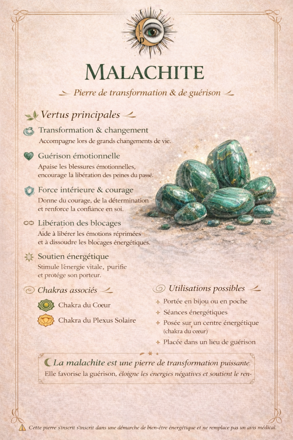 👉 Les vertus et bienfaits de la malachite sont détaillés sur les photos du produit.