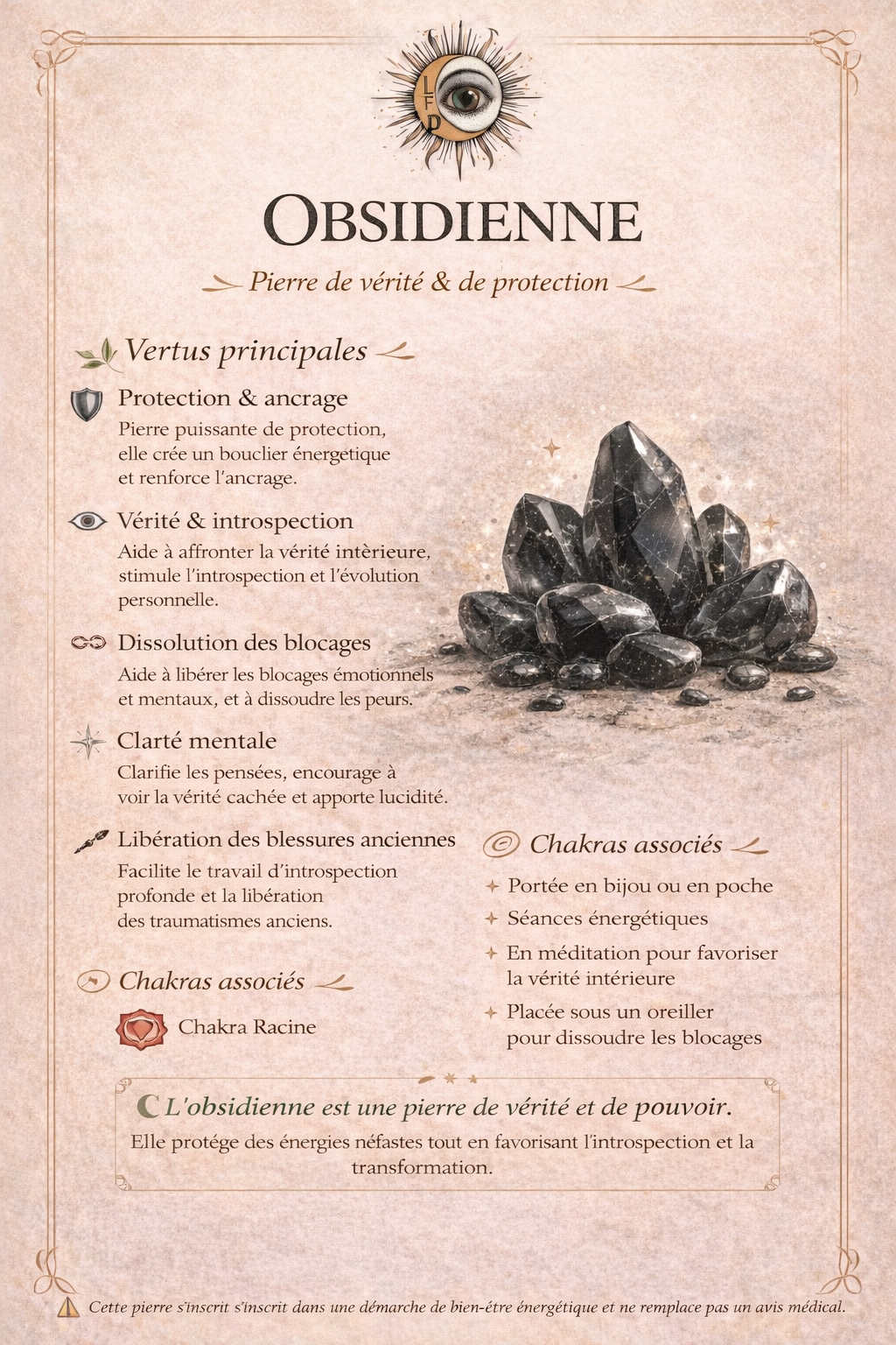 👉 Les vertus et bienfaits de l’obsidienne sont présentés sur les photos du produit.