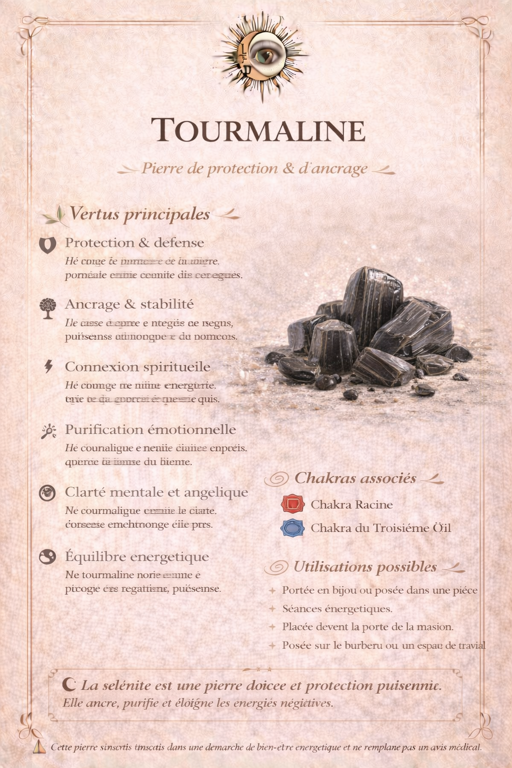 👉 Les vertus et bienfaits de la tourmaline sont présentés directement sur les photos.