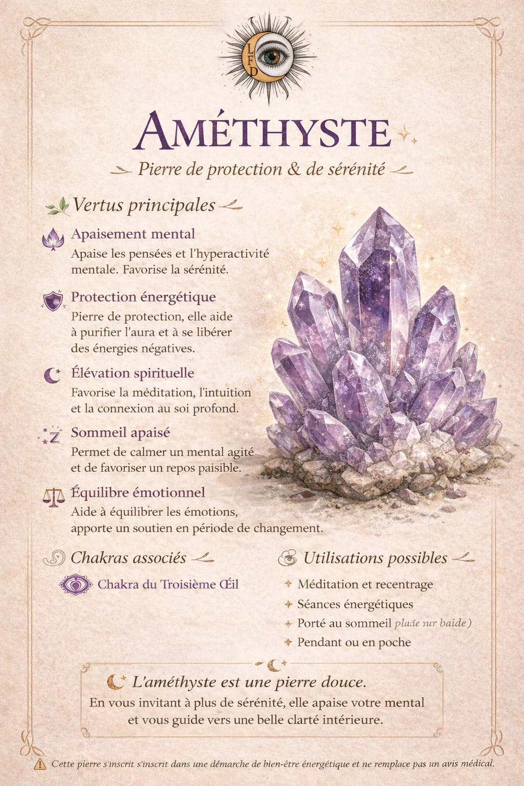 👉 Les vertus et bienfaits de l’améthyste sont détaillés directement sur les photos du produit.